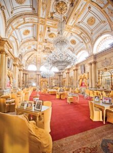 महल की सीलिंग से दो झूमर लटके हुए हैं जिनका वजन 3500 किलोग्राम है। इन झूमरों को बेल्जियम के कलाकारों ने तैयार किया था। कहा जाता है कि झूमरों को सीलिंग में लगाने से पहले छत पर 10 हाथियों को चढ़ाया गया था। ऐसा यह पता लगाने के लिए किया गया था कि छत इतना वजन सहने लायक है या नहीं। करीब एक सप्ताह तक जांच की प्रक्रिया के बाद झूमरों को लगाया गया था।