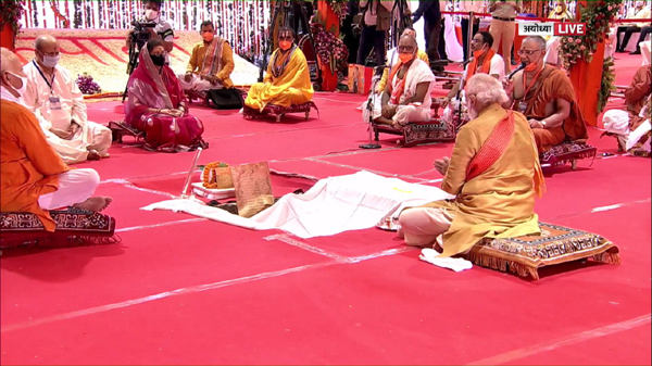 कोरोना के चलते आयोजन की भव्यता में तो कोई कमी नहीं आई लेकिन साक्षात उपस्थिति पर जरूर विराम लग गया। बावजूद कोशिश यह दिखी कि वे लोग जरूर शामिल हों जो सीधे तौर पर पूरे मामले से किसी न किसी रूप में जुड़े रहे हैं। तभी तो अयोध्या में रहने वाले उन परिवार के सदस्यों को भी बुलाया गया, जिनके परिवार के लोग उस दौरान गोलियों से मार दिए गए थे। सिख, बौद्ध, आर्यसमाजी, जैन, वैष्णव सभी परंपरा के लोग भूमि पूजन में आ रहे हैं। उम्रदराज लोगों को जरूर स्वास्थ्य कारणों के चलते उन्हें बताकर दूर रखा गया है। इस कार्यक्रम में देश के लगभग 2000 पावन तीर्थस्थलों की पवित्र मिट्टी और लगभग 100 पवित्र नदियों का जल पहले ही भूमिपूजन के लिए जन्मस्थल पर पहुंच चुका है।