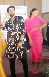 कॉलेज में पूजा बनकर पहुंचे छात्र : फिल्म प्रमोशन के लिए केवल श्री ग्रुप ऑफ इंस्टीट्यूशन में पहुंची इस जोड़ी से मिलने के लिए कई स्टूडेंट आयुष्मान खुराना के किरदार पूजा का गेटअप लेकर पहुंचे। यहां दोनों ही एक्टर्स ने छात्रों के साथ जमकर मस्ती की और अपनी फिल्म के गानों पर जमकर डांस किया।