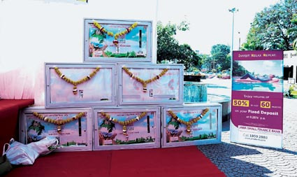 इंदौर। नगर निगम ने कुछ समय पूर्व छप्पन दुकान सहित अन्य क्षेत्रों में झोला एटीएम लगवाए, ताकि प्लास्टिक की थैलियों का इस्तेमाल बंद हो सके। इसी कड़ी में अभी प्रसिद्ध खजराना गणेश मंदिर परिसर में भी झोला एटीएम की मशीनें लगाई गई है, जिसमें 10 रुपए का सिक्का डालने पर कपड़े की थैली मिलेगी। नगर निगम, जना स्मॉल बैंक संस्था सारथी और श्री सांई इंटरप्राइजेस के संयुक्त प्रयासों से यह झोला एटीएम स्थापित किया गया है। इस अवसर पर नो प्लास्टिक विषय पर नुक्कड़ नाटक की प्रस्तुति भी कलाकारों द्वारा दी गई। झोला एटीएम की 7 मशीनें उपलब्ध कराई गई है।