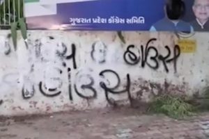अहमदाबाद । बजरंग दल के कार्यकर्ताओं ने (Bajrang Dal Workers) कांग्रेस कार्यालय (Congress Office) राजीव गांधी भवन (Rajiv Gandhi Bhavan) की दीवारों पर (On the Walls) काले रंग के पेंट (Black Paint) से ‘हज हाउस’ (‘Haj House’) लिख दिया (Wrote) । इस पर प्रतिक्रिया देते हुए गुजरात कांग्रेस के प्रवक्ता मनीष दोशी ने इसे कोई तीन-चार लोगों की करतूत बताया।