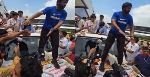 भारतीय पहलवान बजरंग पूनिया पर तिरंगा के अपमान का आरोप लग रहा है। दरअसल दिल्ली एयरपोर्ट पर बजरंग पूनिया विनेश फोगाट का स्वागत करने के लिए पहुंचे थे। विनेश फोगाट इस दौरान खुली गाड़ी पर सवार होकर फैंस का आभार जता रहीं थी। इसी बीच बजरंग तिरंगे के पोस्टर पर खड़े हो गए। वह जूता पहनकर कार के बोनट पर खड़े थे। वहां से बजरंग भीड़ और मीडिया को संभाल रहे थे और गाड़ी के बोनट पर ही तिरंगे का पोस्टर चिपका हुआ था। इस पर बजरंग अपना पैर रखे हुए थे।