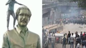 डेस्क: बांग्लादेश में आरक्षण के मसले पर शुरू हुआ विरोध प्रदर्शन अब बेकाबू हो गया है. देश के हालात बिगड़ गए हैं. पीएम पद से शेख हसीना ने इस्तीफा दे दिया है. वह देश छोड़कर भाग गई हैं. इस बीच प्रदर्शन के दौरान एक तस्वीर सामने आई, जहां हिंसक प्रदर्शनकारियों ने बांग्लादेश के संस्थापक शेख मुजीबुर रहमान की मूर्ति का सिर का हिस्सा हथौड़े से तोड़ दिया है.