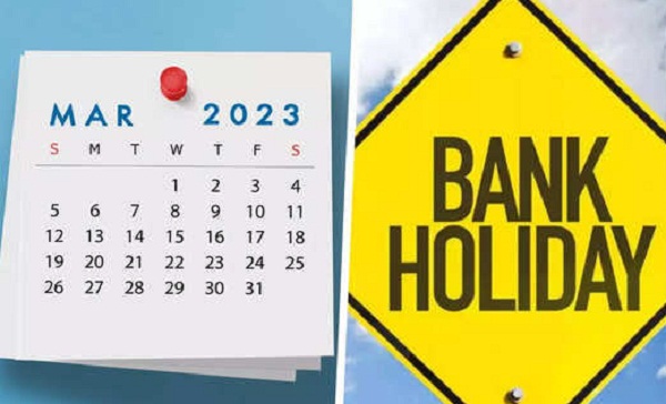 22 मार्च:- गुड़ी पड़वा, उगादी महोत्सव, बिहार दिवस, साजिबु नोंगमापनबा (चेराओबा) और तेलुगु नववर्ष दिवस तथा पहला नवरात्र के अवसर पर बेलापुर, बेंगलुरु, चेन्नई, हैदराबाद (तेलंगाना), इंफाल, जम्मू, मुंबई, नागपुर, पणजी, पटना और श्रीनगर में बैंक बंद रहेंगे।