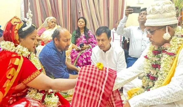 नई दिल्ली । पश्चिम बंगाल(West Bengal) बीजेपी के पूर्व अध्यक्ष (Former President of BJP)और दिग्गज नेता दिलीप घोष (Veteran leader Dilip Ghosh)ने 61 की उम्र में रिंकु मजूमदार(Rinku Majumdar) के साथ सादगी से शादी रचाई। शुक्रवार की शाम न्यू टाउन स्थित अपने फ्लैट में दिलीप ने बेहद निजी माहौल में सात फेरे लिए। उनकी शादी किसी भव्य मंडप में नहीं, बल्कि उनके घर के ही एक कोने में सजा। दुल्हन बनी रिंकु सजधज कर खुद दिलीप के घर पहुंचीं, जहां शाम के वक्त घरवालों और कुछ करीबी रिश्तेदारों की मौजूदगी में शादी की रस्में पूरी की गईं।