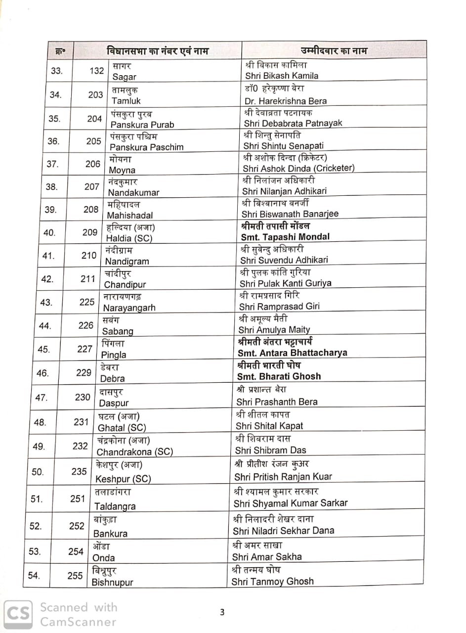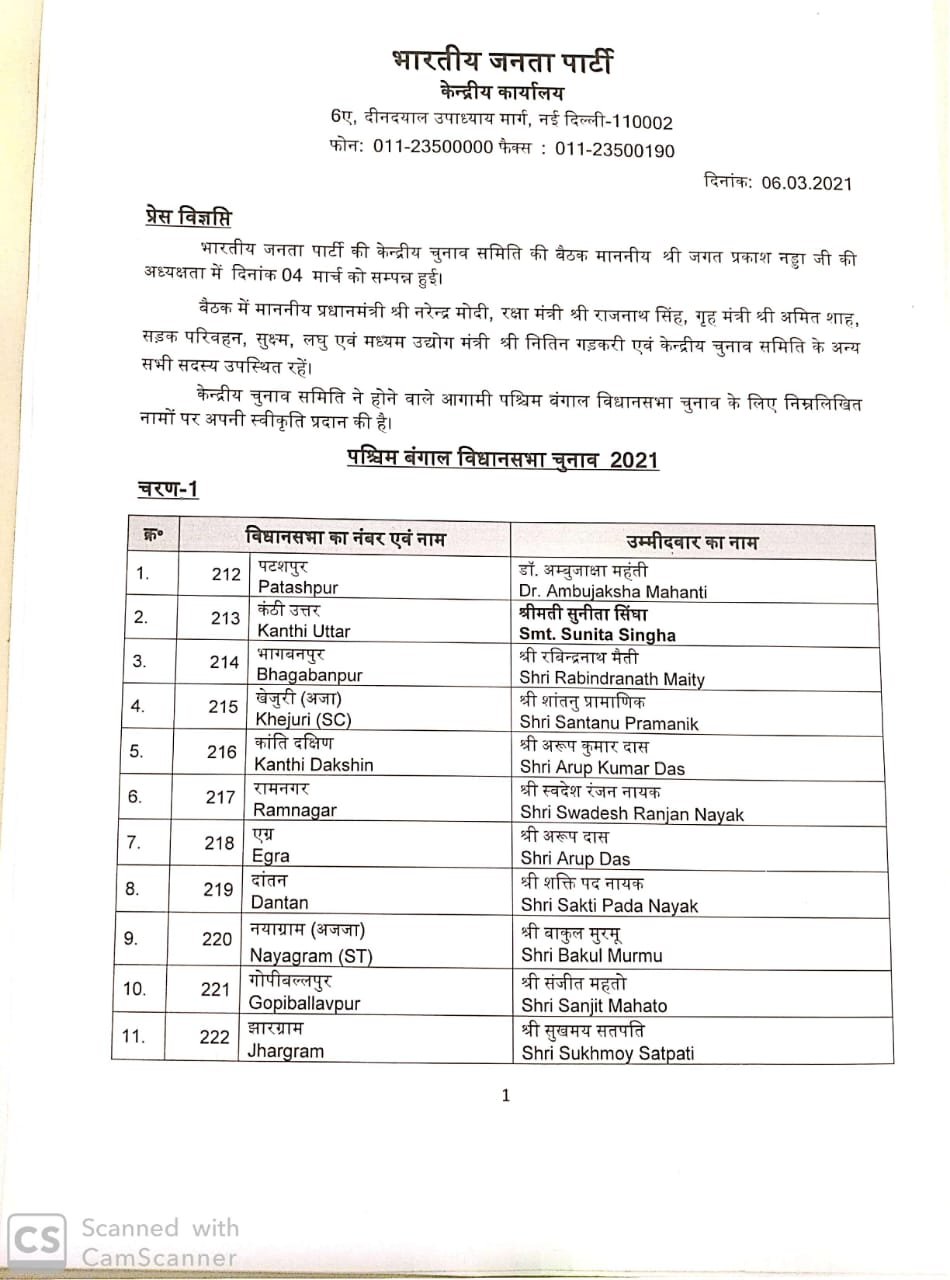 प्रधानमंत्री नरेंद्र मोदी, गृह मंत्री अमित शाह और पार्टी के राष्ट्रीय अध्यक्ष जेपी नड्डा ने बंगाल के शीर्ष नेताओं के साथ बैठक कर उम्मीदवारों के नामों पर अंतिम फैसला किया था।