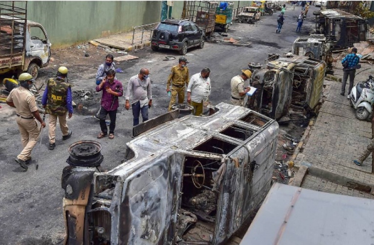 इसके बाद एक समुदाय के लोग सड़कों पर उतर आए और हिंसक भीड़ ने तोड़फोड़ व आगजनी की। इस भीड़ ने विधायक के घर को आग लगाकर कई गाड़ियां फूंक दी थी। इस दौरान पुलिस की गोलीबारी में तीन लोगों की मौत हुई थी।
