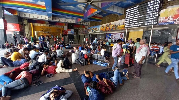 दरअसल, अग्निपथ स्कीम के खिलाफ हो रहे प्रदर्शन में प्रदर्शनकारियों ने रेलवे को निशाना बनाया है. बिहार समेत देश के कई हिस्सों में ट्रेनों में आग लगा दी गई तो वहीं, स्टोशनों पर तोड़फोड़ की घटनाएं सामने आई हैं. ऐसे में आज (सोमवार) को भारत बंद के दौरान रेलवे नें अहतियातन रेलवे स्टेशनों की सुरक्षा बढ़ा दी है. वहीं, सैकड़ों ट्रेनें रद्द कर दी हैं. नई दिल्ली समेत कई रेलवे स्टेशनों पर यात्री फंसे हुए हैं. बिहार के नालंदा जिले के रहने वाले राहुल अपने परिवार के साथ 3 दिन से रेलवे स्टेशन पर ही रह रहे हैं, क्योंकि जिस ट्रेन से उन्हें सफर करना है वो बीते 3 दिन से रोज कैंसिल हो रही है. कई सारे मुसाफिर रेलवे स्टेशन पर ही डेरा डाले हुए हैं. भोपाल रेलवे स्टेशन पर मध्य प्रदेश पुलिस,आरपीएफ, जीआरपी के साथ-साथ रेल रक्षा समिति के लोगों को भी तैनात किया गया है.