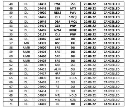 रद्द हुई पैसेंजर ट्रेनों की सूची