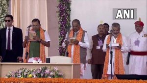 अहमदाबाद । बीजेपी नेता (BJP Leader) भूपेंद्र पटेल (Bhupendra Patel) ने लगातार दूसरी बार (For the Second Time) गुजरात के मुख्यमंत्री पद की (As Chief Minister of Gujarat) शपथ ग्रहण की (Sworn in) । उनके अलावा (Besides Them) 16 मंत्रियों ने भी (16 Ministers also) शपथ ली (Sworn in) । मुख्यमंत्री भूपेंद्र पटेल के शपथ ग्रहण समारोह में प्रधानमंत्री नरेंद्र मोदी, केंद्रीय गृह मंत्री अमित शाह, रक्षा मंत्री राजनाथ सिंह, केंद्रीय मंत्री स्मृति ईरानी, उत्तर प्रदेश के मुख्यमंत्री योगी आदित्यनाथ सहित भाजपा के कई नेता पहुंचे।
