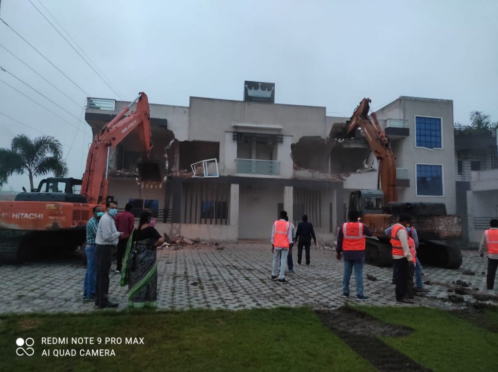 इन्दौर। आज शुक्रवार तडक़े साढ़े 4 बजे लोगों की नींद ही नहीं खुली थी कि इंदौर के कनाडिय़ा रोड पर निगमकर्मी और पुलिस बल के ढाई से तीन सौ कर्मचारियों का अमला धड़धड़ाता पहुंचा। आग की तरह फैली खबर के बाद भौचक रहवासी जब सडक़ों पर आए तो पता चला कि बरसों से जहां शहनाइयां गूंज रही थीं, वहां अब बुलडोजर गूंजेंगे। प्रशासन ने अपनी ही जमीन पर तने प्रेम बंधन और रिवाज मैरिज गार्डन ध्वस्त करते हुए शहर को बता दिया कि अब शहर में न मनमानी का रिवाज चलेगा और न ही माफियाओं से कोई प्रेम बंधन।