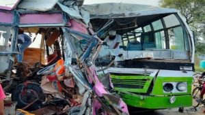 डेस्क। मोगा-अमृतसर के मेन हाइवे के पास शुक्रवार सुबह दो बसों की जबरदस्त टक्कर में तीन कांग्रेस कार्यकर्ताओं की मौत हो गई, जबकि करीब 50 लोग घायल हो गए हैं. स्थानीय मीडिया रिपोर्ट्स के मुताबिक, यह हादसा लुहारा गांव के नजदीक हुआ है. हादसे का शिकार हुई बसों में से एक बस नवजोत सिंह सिद्धू की ताजपोशी के कार्यक्रम में जा रही थी.