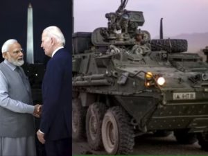 वॉशिंगटन: प्रधानमंत्री नरेंद्र मोदी इस वक्त अमेरिका की राजकीय यात्रा पर हैं. पीएम मोदी के दौरे का आज दूसरा दिन है. पूरी दुनिया की नजरें दोनों देशों की बढ़ती नजदीकियों पर हैं. इस दौरे पर अमेरिका ने भारत को आठ पहियों वाले बख्तरबंद लड़ाकू वाहन “स्ट्राइकर” और एम777 गन देने का ऑफर किया है. हिंदुस्तान अखबार ने नई दिल्ली और वॉशिंगटन के अधिकारियों के हवाले से खबर दी है कि इन दोनों उपकरणों की पेशकश का अंतिम निर्णय बाइडन प्रशासन द्वारा लगाई गई शर्तों पर निर्भर है.