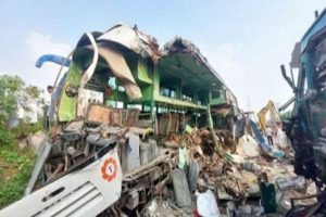 बाराबंकी । उत्तर प्रदेश (UP) से एक बड़े सड़क हादसे (Big road accident) की खबर सामने आ रही है। यहां बाहरी रिंग रोड पर गुरुवार सुबह ट्रक और यात्री बस की जबरदस्त टक्कर (Truck-bus collision) हो गई, जिसमें अब तक 13 लोगों की मौत हो चुकी है और 30 से अधिक लोगों के घायल (13 killed, more than 30 injured) होने की खबर है।