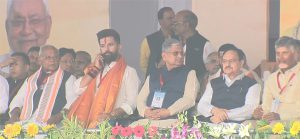 नीतीश कुमार के साथ मंच पर यूपी, मेघालय और छत्तीसगढ़ हरियाणा, राजस्थान और ओडिशा के मुख्यमंत्री भी हैं। भाजपा सांसद मनोज तिवारी, भोजपुरी सुपरस्टार पवन सिंह मंच पर गीत गा रहे हैं। नीतीश कुमार ने जनता का अभिवादन कर रहे हैं। लोग एनडीए सरकार के लिए नारेबाजी कर रहे हैं। भाजपा की नवनिर्वाचित मैथिली ने कहा कि मैं बहुत उत्साहित हूं। आज पूरे बिहार के उत्साह का दिन है।