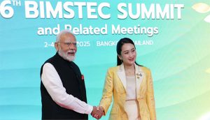 थाईलैंड में हो रहे बिम्सटेक शिखर सम्मेलन में भारत, बांग्लादेश, नेपाल, म्यांमार, श्रीलंका और भूटान के नेता भाग ले रहे हैं। सम्मेलन में बंगाल की खाड़ी क्षेत्र में समृद्धि, सुरक्षा और समावेशिता के प्रति साझा प्रतिबद्धता को साकार करने के लिए बैंकॉक विजन 2030 को अपनाया गया है।