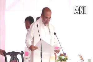 इंफाल । नोंगथोम्बम बीरेन सिंह (Nongthombam Biren Singh) ने सोमवार को लगातार दूसरी बार (2nd term) मणिपुर के मुख्यमंत्री (Manipur CM) के रूप में शपथ ली (Sworn-in) । इंफाल (Imfal) के राजभवन (Raj Bhavan) में एक समारोह में राज्यपाल ला. गणेशन (Governor La. Ganeshan) ने सिंह को पद की शपथ दिलाई (Swore)।