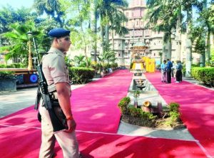 सुरक्षा को लेकर रथ को चारों ओर से अद्र्धसैनिक बल और एसपीजी तथा प्रधानमंत्री के सुरक्षा गार्ड घेरे रहेंगे। रथ में भाजपा प्रत्याशियों के लिए अभी तक जगह तय नहीं की गई है। नगर संगठन का कहना है कि प्रोटोकाल के तहत ही सारी व्यवस्थाएं की जा रही हैं। पहले तय हुआ था कि प्रधानमंत्री का स्वागत विभिन्न मंचों से भाजपा प्रत्याशी करेंगे, लेकिन वह भी बाद में मना कर दिया गया। एक भी मंच रोड शो के मार्ग पर नहीं रहेगा। जिलों की सभी विधानसभाओं के प्रत्याशी राजबाड़ा पर मौजूद रहेंगे और वहीं से प्रधानमंत्री का अभिनंदन करेंगे। यहां सांसद और अन्य जनप्रतिनिधियों की भी इंट्री रहेगी। इसके लिए अलग से कार्ड बनाए गए हैं।
