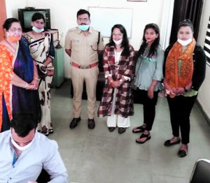 भाजपा नेत्रियों ने पुलिस वालों को बांधे रक्षा सूत्र