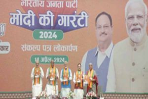 नई दिल्ली । लोकसभा चुनाव-के लिए (For Lok Sabha Elections) भाजपा (BJP) ने अपना चुनाव घोषणा पत्र (Its Election Manifesto) जारी कर दिया (Has Released) । प्रधानमंत्री नरेंद्र मोदी, भाजपा के राष्ट्रीय अध्यक्ष जेपी नड्डा, चुनाव घोषणा पत्र समिति के अध्यक्ष एवं रक्षा मंत्री राजनाथ सिंह, केंद्रीय गृह एवं सहकारिता मंत्री अमित शाह और चुनाव घोषणा पत्र समिति की संयोजक और केंद्रीय वित्त मंत्री निर्मला सीतारमण एवं अन्य नेताओं की मौजूदगी में नई दिल्ली स्थित पार्टी के केंद्रीय कार्यालय विस्तार में रविवार को पार्टी का चुनाव घोषणा पत्र (संकल्प पत्र – लोकसभा 2024 ) जारी किया गया।