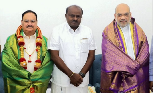 जेडीएस नेता और कर्नाटक के पूर्व मुख्यमंत्री एचडी कुमारस्वामी ने दिल्ली में केंद्रीय गृह मंत्री अमित शाह और भाजपा प्रमुख जेपी नड्डा से मुलाकात के बाद यह घोषणा की।