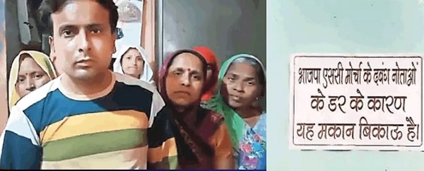 अलीगढ़ (Aligarh) ! उत्तर प्रदेश के अलीगढ़ के सासनीगेट क्षेत्र में मुहल्ला पक्की सराय (mohalla pakka sarai) के लोगों ने एक भाजपा नेता पर दंबगई के आरोप लगाए हैं। पार्टी के दो बड़े नेताओं को भी कठघरे में खड़ा किया है। आरोप है कि बीजेपी के एससी एसटी मोर्चा से जुड़ा यह नेता शराब पीकर (after drinking alcohol) आए दिन मुहल्ले में हंगामा करता है. यहां तक कि महिलाओं को देखकर उनके सामने पेशाब करने लग जाता है. वहीं यदि कोई विरोध करने की कोशिश करता है तो आरोपी उसे एससी एसटी एक्ट में फंसा कर जेल भेजने की धमकी देता है. मुहल्ले के लोगों ने इस संबंध में कई बार पुलिस में शिकायत भी दी, लेकिन जब कोई कार्रवाई नहीं हुई तो लोगों ने अपने घरों के बाहर ‘घर बिकाऊ है’ का पोस्टर लगा दिया है.