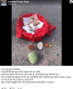 विधायक लोकेंद्र प्रताप सिंह ने अपनी फेसबुक पोस्ट में लिखा, “यह हमारे खिलाफ हमारा फ़ोटो रखकर टोना कर रहे हैं। इनको पता नही मैं भोलेनाथ का अनन्य भक्त हूं। ऐसे टोटकों से कुछ नहीं होने वाला। मगर इन विकृत मानसिकता के लोग जो आज बीसवीं सदी में जब कि हमारा विज्ञान चन्द्रमा पर पहुंच गया तब भी यह लोग टोटकों पर भरोसा करते। ईश्वर आपको सद्बुद्धि दे मित्र और मेरी शुभकामनाएं शुभाशीष भी आपको।