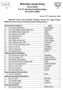 भाजपा के राष्ट्रीय अध्यक्ष जेपी नड्डा ने किया टीम का ऐलान, कैलाश विजयवर्गीय पुनः महासिचव, देखिए पूरी लिस्ट