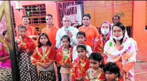 संत नगर। बजरंग सेना समिति के सदस्यों ने मॉं काली मंदिर हलालपुर में मॉं काली जी की आरती कर नौ कन्याओं को चुनरी पहनाकर आशीर्वाद लिया। आरती के बाद प्रसादी वितरण किया गया। इस अवसर पर विशेष रूप से रेलवे सघर्ष समिति के अध्यक्ष परसराम आसनानी, भाजपा नेत्री मुस्कान हीरानंदानी बजरंग सेना समिति के अर्चक पुरोहित पं. राज कुमार गर्ग, अध्यक्ष कमलेश देवानी, राज बिजोरिया, देवेन्द्र जैन, राजेश केवलानी, हनी, आत्माराम, विनोद, दीपक, रवि उपस्थित थे।