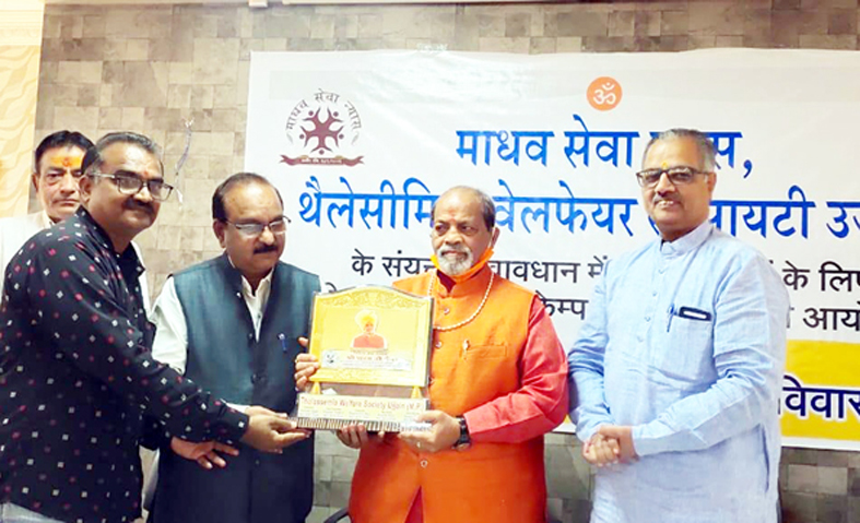 उज्जैन। माधव सेवा न्यास एवं थैलेसीमिया वेलफेयर सोसायटी के संयुक्त तत्वावधान में एक दिवसीय एचएलए और ओपीडी कैम्प का आयोजन किया गया जिसमें थैलेसीमिया से पीडि़त बच्चों के बोन मैरो ट्रांसप्लांट हेतु ब्लड टेस्ट एवं अन्य परामर्श बड़ोदा के डॉ. शैलेश लवाना के मार्ग दर्शन में दिया गया। आयोजन के उद्घाटन कार्यक्रम के अतिथि विधायक पारस जैन, विजय केवलिया, अमृत भाई सोनी, डॉ. शैलेश लवाना बड़ोदा आदि उपस्थित रहे। विधायक जैन ने अपने उद्बोधन में कहा कि बीमार व्यक्ति में आत्मबल और आत्मविश्वास हो तो समस्त जानलेवा बीमारियों अथवा किसी भी समस्या का समाधान मिल सकता है।