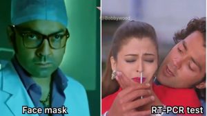 2020 में कोरोना वायरस (Coronavirus) के कहर से पहले देश में कोरोना वायरस, सोशल डिस्टेंसिंग (Social Distancing) और लॉकडाउन (Lockdown) जैसे शब्दों के बारे में कोई जानता भी नहीं था। लेकिन 1997 में रिलीज हुई फिल्म ‘और प्यार हो गया’ के एक सीन में बॉबी देओल ऐश्वर्या राय का स्वैब टेस्ट (Swab Test) करते हुए नजर आ रहे हैं (ऐसा हकीकत में नहीं है, बस उस सीन को टेस्ट से जोड़ा गया है)। वीडियो में बॉबी ऐश्वर्या से कह रहे हैं- प्यार से नहीं तो जबर्दस्ती ही सही… छींको… छींको… इस सीन को भी कोरोना से कनेक्ट किया जा रहा है।