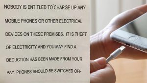 वायरल हो रहे पोस्टर में लिखा गया है, ‘कोई भी कर्मचारी ऑफिस में अपना मोबाइल फोन अथवा किसी भी प्रकार का इलेक्ट्रॉनिक उपकरण चार्ज ना करे. अगर कोई ऐसा करता है तो ये बिजली चोरी मानी जाएगी.’ इसके आगे पोस्टर में लिखा है, ‘जो भी कर्मचारी ऐसा करेगा, उसकी सैलेरी में कटौती की जाएगी. इसलिए हर कोई अपने फोन को ऑफिस में स्विच ऑफ रखे.’