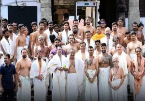 इस मौके पर टीम इंडिया के खिलाड़ियों ने पारंपरिक वेशभूषा पहनी हुई थी. खिलाड़ियों ने कमर से नीचे मुंडू (धोती) पहनी हुई थी और कमर पर एक खास तरह का कपड़ा बांधा हुआ था. इस मंदिर में दर्शन के लिए पुरुषों को इसी तरह की वेशभूषा पहननी होती है. टीम इंडिया की मंदिर दर्शन की जो तस्वीर सामने आई है. उसमें युजवेंद्र चहल, श्रेयस अय्यर, अक्षर पटेल, कुलदीप यादव और सूर्यकुमार यादव मंदिर में पारंपरिक पोशाक में नजर आ रहे हैं.