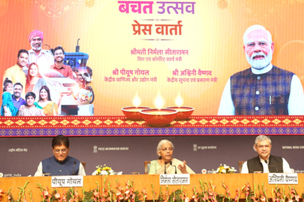नई दिल्ली । केंद्रीय वित्त मंत्री निर्मला सीतारमण (Union Finance Minister Nirmala Sitaraman) ने कहा कि जीएसटी करों में कटौती (GST Tax Cuts) केवल त्योहारी सीजन के लिए ही नहीं की गई है (Are not just for the Festive Season) । केंद्रीय वित्त मंत्री निर्मला सीतारमण, वाणिज्य मंत्री पीयूष गोयल और रेलवे, इलेक्ट्रॉनिक्स एवं आईटी […]