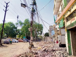घर तोड़े, बिजली के मीटर सडक़ पर लटके, हो सकता है हादसा