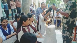 बीएसएफ, दक्षिण बंगाल सीमांत के प्रवक्ता डीआईजी ए.के. आर्य ने बताया कि सीमा सुरक्षा बल अंतरराष्ट्रीय सीमा की चौकसी के साथ–साथ सीमा क्षेत्र के युवाओं के लिए सुरक्षा बलों के प्रति जागरूकता और उत्साह जगाने के लिए समय–समय पर विभिन्न कार्यक्रम आयोजित करती रहती है। इसी सिलसिले में दक्षिणी बंगाल सीमांत के अन्तर्गत उत्तर 24 परगना जिला के सीमावर्ती इलाके में तैनात 68वीं वाहिनी की सीमा चौकी मामाभगिना में हथियारों की एक प्रदर्शनी लगाई गई। हथियार प्रदर्शनी में स्कूली बच्चों को ड्यूटी में इस्तेमाल किए जाने वाले विशेष उपकरणों की भी जानकारी दी गई। आर्य ने बताया कि जैसा बच्चों ने बताया, बच्चों ने अपने हाथ से हथियार छूकर देखा और अपने देश की ताकत को नजदीक से महसूस किया। बच्चों ने अधिकारी की मौजूदगी में हथियारों को छूकर देखा। उनका उत्साह देखते ही बनता था।