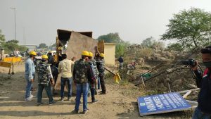 इन्दौर। कल कम्प्यूटर बाबा पर प्रशासन का बुलडोजर चला तो आज उनके चेले के कब्जे को निशाना बनाया। सुपर कॉरिडोर क्षेत्र में उनके चेले शत्रुघ्न बाबा ने वन विभाग की 3500 स्क्वेयर फीट की जमीन पर दो मंदिर और कमरे के साथ-साथ कई टीनशेड बना लिए थे। दोनों मंदिरों को छोड़कर शेष सभी कब्जों को हटा दिया गया। वहां बनाए गए कमरे और टीनशेड जेसीबी और पोकलेन की मदद से तोड़ दिए गए और वहां रखा सामान निगम के वाहनों में जब्त कर ट्रेंचिंग ग्राउंड भेज दिया गया।