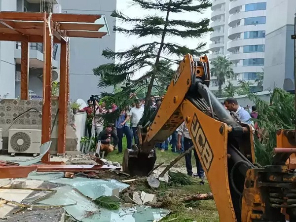 नोएडा । फेस-2 स्थित ग्रैंड ओमेक्स हाउसिंग सोसाइटी (Omaxe Housing Society) में महिला के साथ बदसलूकी करने के मामले में फरार चल रहे कथित भाजपा नेता श्रीकांत त्यागी (BJP leader Shrikant Tyagi) के अवैध निर्माण (illegal construction) को आज बुलडोजर से तोड़ दिया गया है।