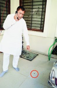 इन्दौर। कल शाम भाजपा के नगर अध्यक्ष रहे गोपीकृष्ण नेमा के घर हमले के बाद आज सुबह जब परिजनों ने फर्श की सफाई दी तो उस पर एक छेद नजर आया जो संभवत: गोली चलने के कारण हुआ है। इसकी जानकारी आज सुबह पुलिस को दी गई।