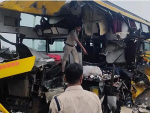 जानकारी के मुताबिक, बीजेपी कार्यकर्ताओं से भरी लग्जरी बस बिलासपुर जिले में अंबिकापुर नेशनल हाईवे पर सड़क किनारे खड़े हाईवा से जा टकराई। टक्कर इतनी जबरदस्त थी कि बस बुरी तरह से क्षतिग्रस्त हो गई है। बस में 40 कार्यकर्ता सवार थे। हादसा सुबह साढ़े 4 से 5 बजे के बीच हुआ।
