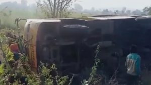 छतरपुर। छतरपुर किशनगढ़ से बिजावर (Chhatarpur Kishangarh to Bijawar) जा रही अप्सा ट्रैवल्स की बस (एमपी 19 P 0254) रविवार को कुपी के पास एक मवेशी (Cattle) को बचाने के दौरान अनियंत्रित होकर पलट गई। घटना में बस में सवार 15 यात्री घायल हुए हैं, जिसमें से 8 मरीजों को अस्पताल में भर्ती (admitted to hospital) किया गया है। बताया जा रहा है की बिजावर से जैतपुर (Bijawar to Jaitpur) चलने वाली बस को संचालक और चालक द्वारा रूट से अलग गांवों के अंदर ले जाया जा रहा है। चालक ने बस पर नियंत्रिण खो दिया और बस पलट गई। बस में सवार यात्रियों में चीख पुकार मच गई।