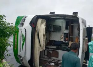 इंदौर। मध्यप्रदेश के सीहोर (Sehore of Madhya Pradesh) में शुक्रवार को भीषण सड़क हादसा हो गया। जानकारी के मुताबिक भोपाल से इंदौर (Bhopal to Indore) की ओर जा रही बस सीहोर में चौपाल सागर (Chaupal Sagar in Sehore) के पास पलट गई। इस बस में सवार 17 यात्रियों के घायल होने की खबर है। सामने आई घटना में घायल हुए यात्रियों में 5 की हालत नाजुक बताई जा रही है। इन सभी मरीज़ों को भोपाल रेफर किया गया है।