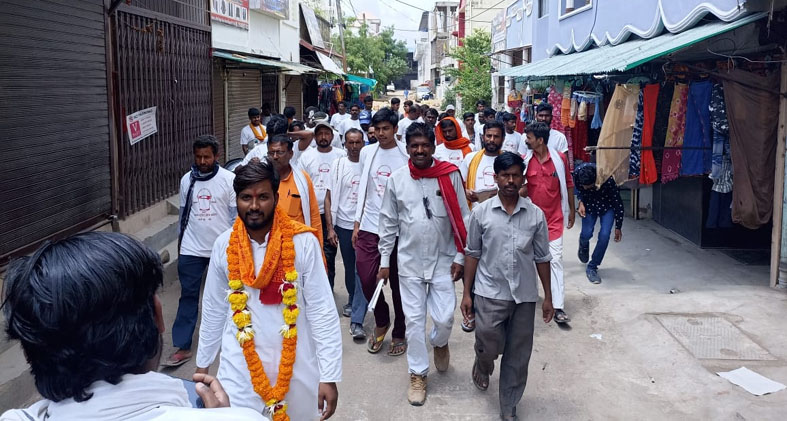 • पत्नी के लिए पति मैदान में कर रहे प्रचार