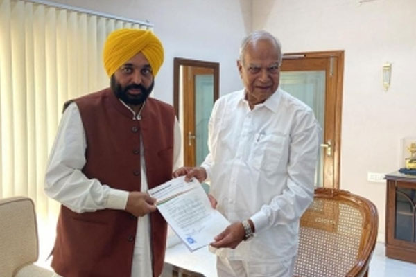 • भगवंत मान ने की राज्यपाल से मुलाकात, आप सरकार बनाने का दावा किया पेश