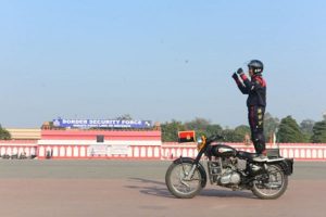 गौरतलब हो कि कुछ दिन पहले ही बीएसएफ की डेयरडेविल बाइकर टीम ने मोटरसाइकिल पर 12 फीट 9 इंच की सीढ़ी के शीर्ष पर दो व्यक्तियों ने खड़े होकर लगातार 2 घंटे 21 मिनट 48 सेकंड तक मोटरसाइकिल चला कर नया रिकॉर्ड बनाया था। इस दौरान टीम ने करीब 81.5 किलोमीटर की दूरी तय की थी।