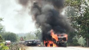 घटना के बाद ट्रक में आग लग गई, जिससे वह पूरी तरह जल गया। हादसे के बाद ग्रामीणों और पुलिस ने घायलों को अस्पताल में भर्ती कराया। जानकारी के अनुसार कार क्रमांक एचपी 51 बीई 6573 इंदौर की ओर जा रही थी और इंदौर की ओर से खाली डंपर आ रहा था। ग्राम किलोदा और कलवार घाट के बीच कार-डंपर की टक्कर हो गई।
