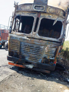 इंदौर। गुजरात से इंदौर आ रहे एक कंटेनर (Container) में नावदापंथ के पास हाईटेंशन लाइन (high tension line) का तार टकराने के कारण आग (Fire) लग गई, जिससे उसमें रखे दवाइयों (medicines) के 100 से ज्यादा कार्टून (Cartoon) जल गए। चालक (Driver) ने गाड़ी से कूदकर जान बचाई। वहीं दूसरी ओर कल रात चितावद में एक मकान में आग लगने से दो भाई झुलस गए।