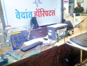 बालदा कॉलोनी (Balda Colony) की रहने वाली सलोनी ठाकुर (Saloni Thakur) को पथरी का दर्द होने के चलते शनिवार को जूनी इंदौर ब्रिज (Juni Indore Bridge) के पास स्थित वेदांत अस्पताल (Vedanta Hospital) में भर्ती कराया गया था। कल रात को उसकी तबीयत बिगड़ी। परिजन का आरोप है कि पथरी का इलाज सही से नहीं किया गया और डॉक्टर (Doctor) डायलिसिस (Dialysis) करने का कहने लगे। हालत खराब होने पर पास के आनंद अस्पताल (Anand Hospital) रैफर कर दिया। जब उनसे इलाज नहीं हो रहा था तो जब हालत सामान्य थी, तभी दूसरे अस्पताल रैफर कर देते। जब रैफर किया गया तब अस्पताल (Hospital) में मौजूद सारे डॉक्टर वहां से चले गए और कोई भी जिम्मेदार जिम्मेदारी उठाने को तैयार नहीं था। अस्पताल (Hospital) में यह भी नहीं बता रहे थे कि युवती को हुआ क्या है। इसके बाद परिजन का गुस्सा अस्पताल (Hospital) पर टूटा और रिसेप्शन (Reception) के कांच फोड़ दिए। जूनी इंदौर, भंवरकुआं, रावजी बाजार और छत्रीपुरा थाने का पुलिस बल भी मौके पर बुलाया गया। परिजन को समझाइश देकर मामला शांत किया गया। पुलिस का कहना है कि इसमें डॉक्टरों (Doctors) की लापरवाही सामने आई तो उनके खिलाफ कार्रवाई की जाएगी।