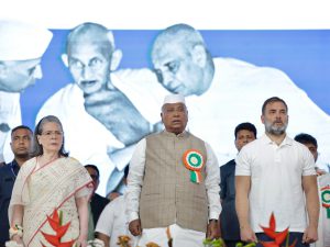 बता दें कि कांग्रेस का दो दिवसीय अधिवेशन गुजरात में हो रहा है, जिसमें देश के कोने-कोने से नेता शामिल होने पहुंचे हैं। इस अधिवेशन में सोनिया गांधी, लोकसभा में विपक्ष के नेता राहुल गांधी और पार्टी के राष्ट्रीय अध्यक्ष मल्लिकार्जुन खड़गे शामिल हुए, लेकिन इस बैठक में प्रियंका गांधी शामिल नहीं हुईं, जिसे लेकर राजनीतिक गलियारों में कई तरह के सवाल उठ रहे हैं। कांग्रेस अधिवेशन की शुरुआत झंडावंदन से हुई। इसके बाद मल्लिकार्जुन खड़गे ने अपने संबोधन की शुरुआत की, जिसमें उन्होंने विभिन्न मुद्दों का जिक्र कर केंद्र की मोदी सरकार पर जोरदार निशाना साधा।