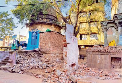 मंदिर को बचाते हुए बाधाएं हटाने का प्रयास